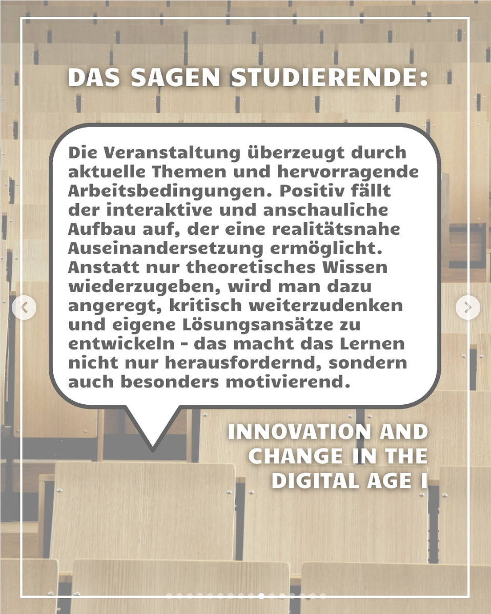 Dozentin für „Innovation und Change im Digitalzeitalter I und II“ (Bachelor & Master)
