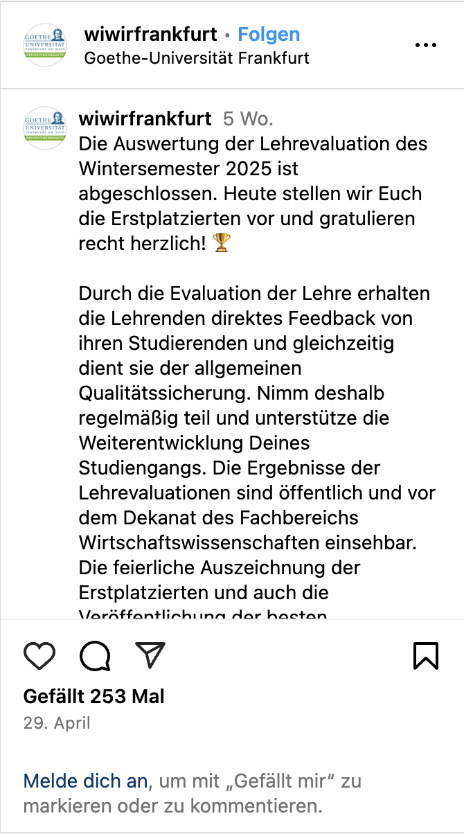 2024 & 2025: Christine Riedmann-Streitz wird von der Goethe-Universität Frankfurt aufgrund der Bewertung ihrer Studierenden als Erstplatzierte Dozentin ausgezeichnet.